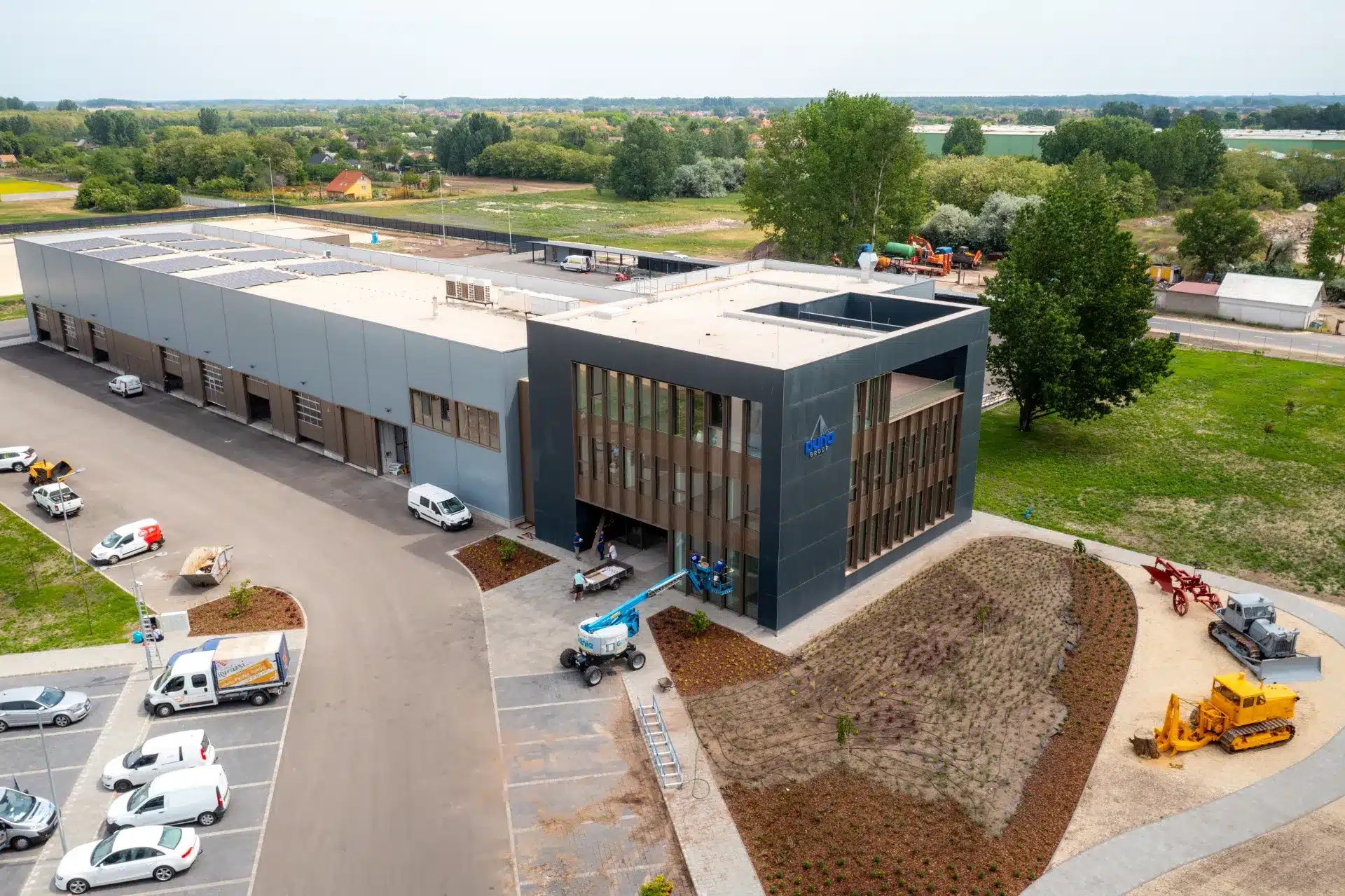 Integrált ipari központ valósult meg Tiszakécskén a Duna Aszfalt számára, csarnokokkal, műhelyekkel és prémium irodai háttérrel, hosszú távú működésre tervezve.